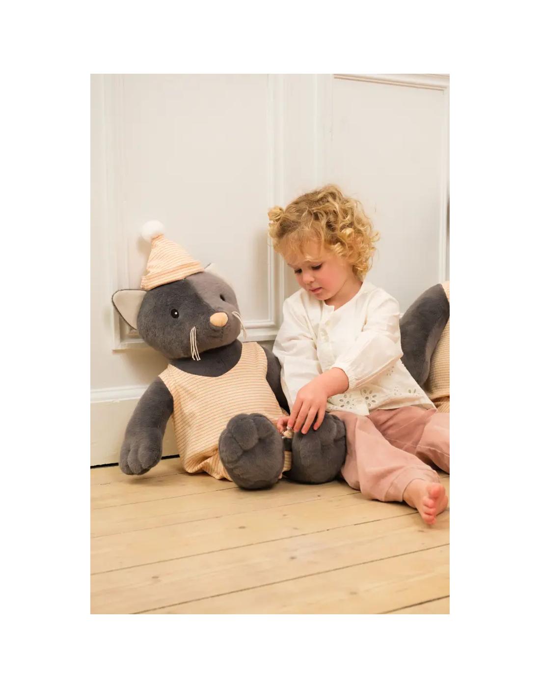 Λούτρινη Γάτα MALO Medium 40cm – Γκρι με Ριγέ Φόρμα & Σκουφάκι