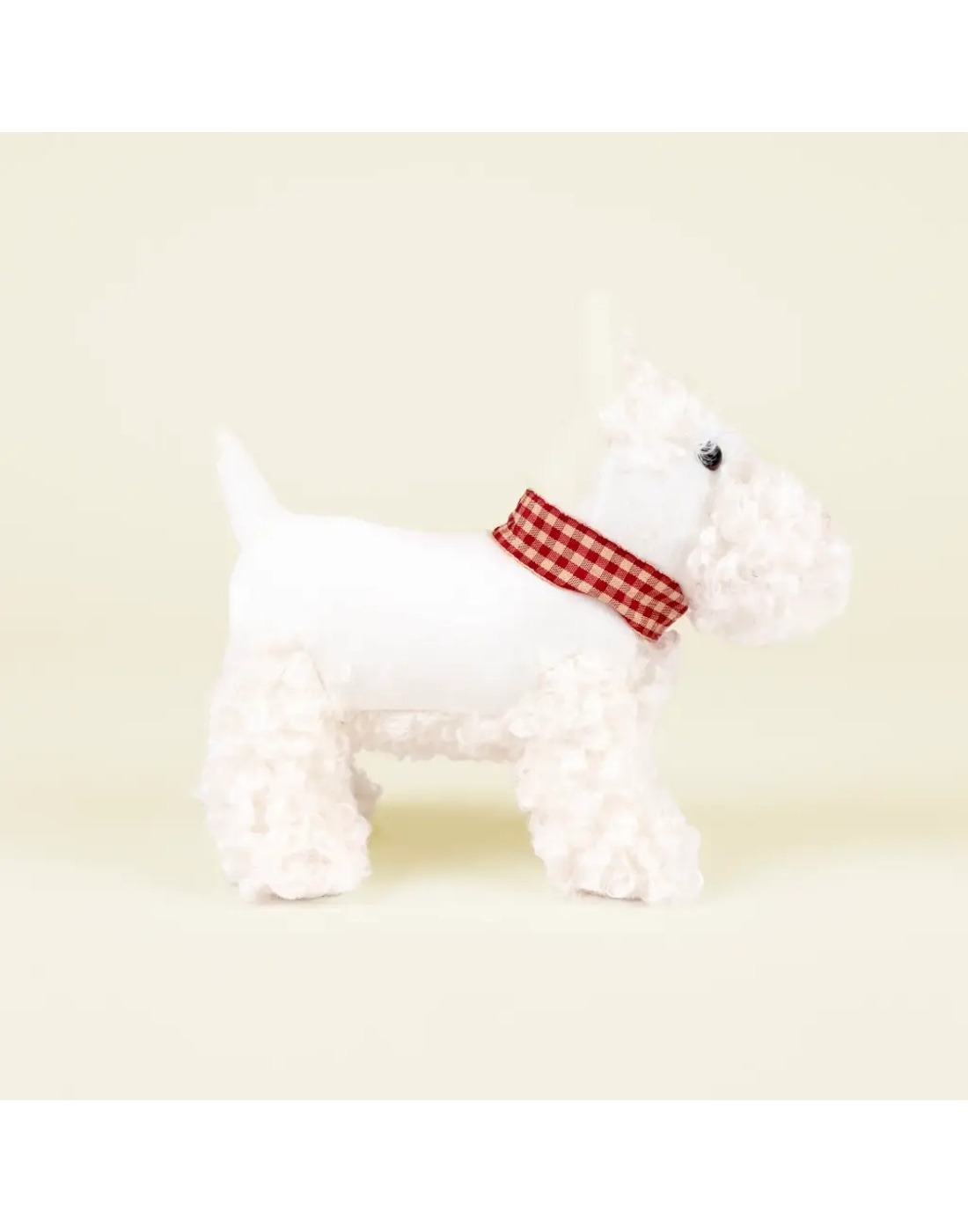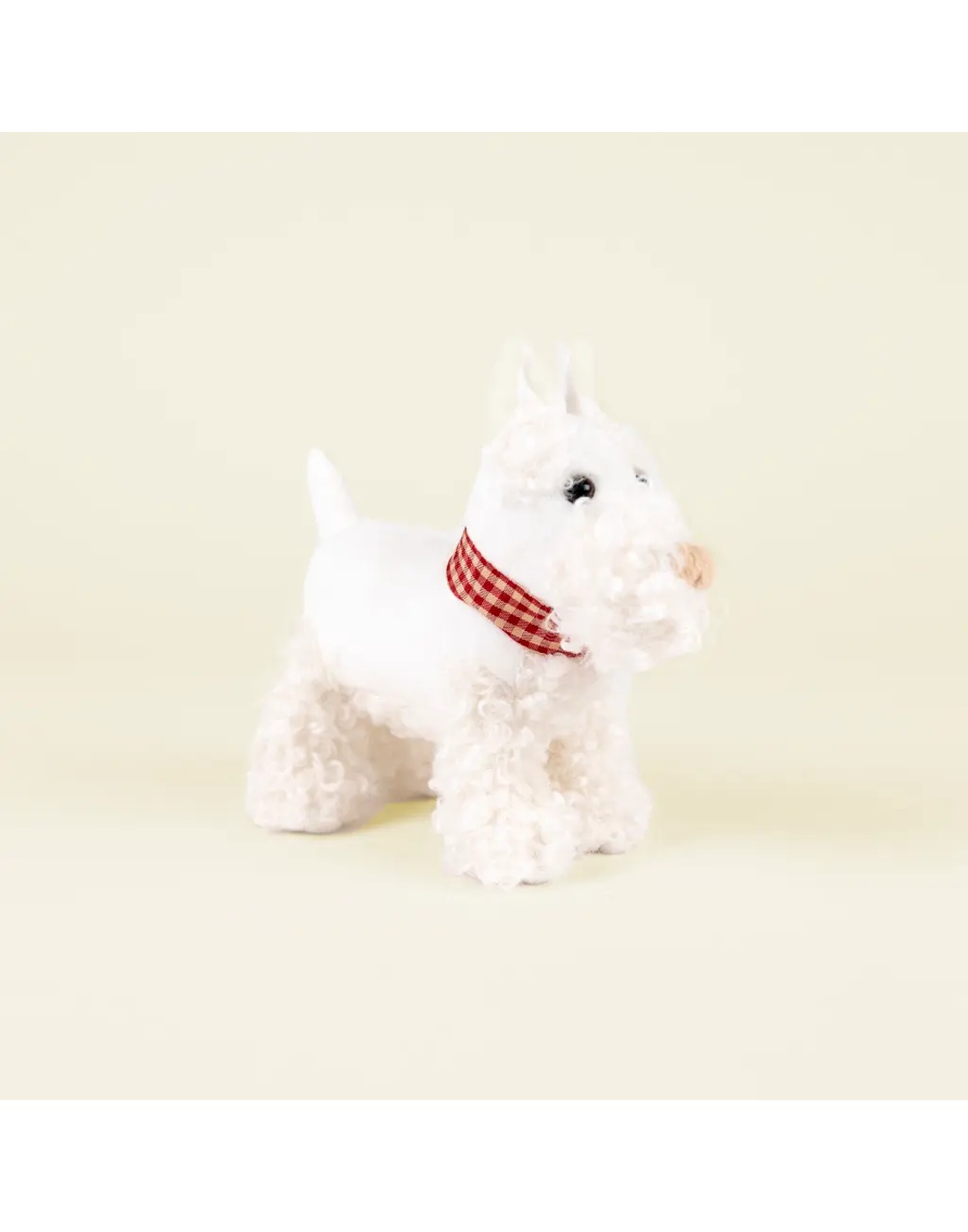 Λούτρινο Σκυλάκι LOLA Small – Λευκό με Καρό Κόκκινο Κολάρο