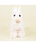 Απαλό λούτρινο σκυλάκι σε λευκό χρώμα, ιδανικό για αγκαλιές και παιχνίδι.