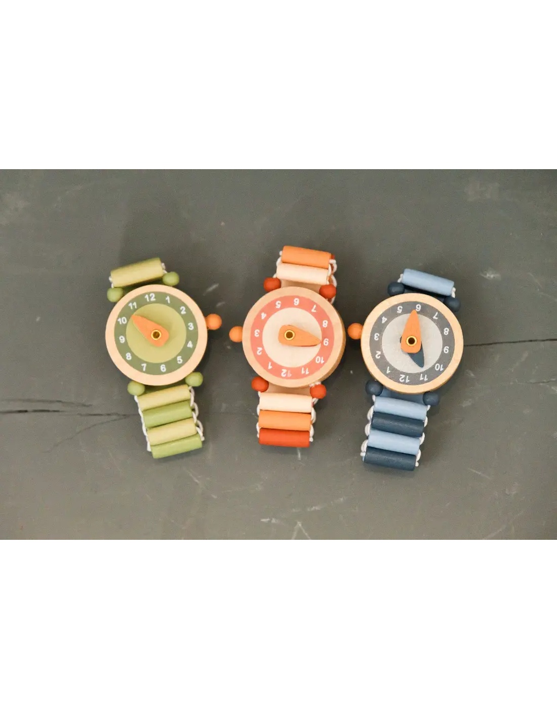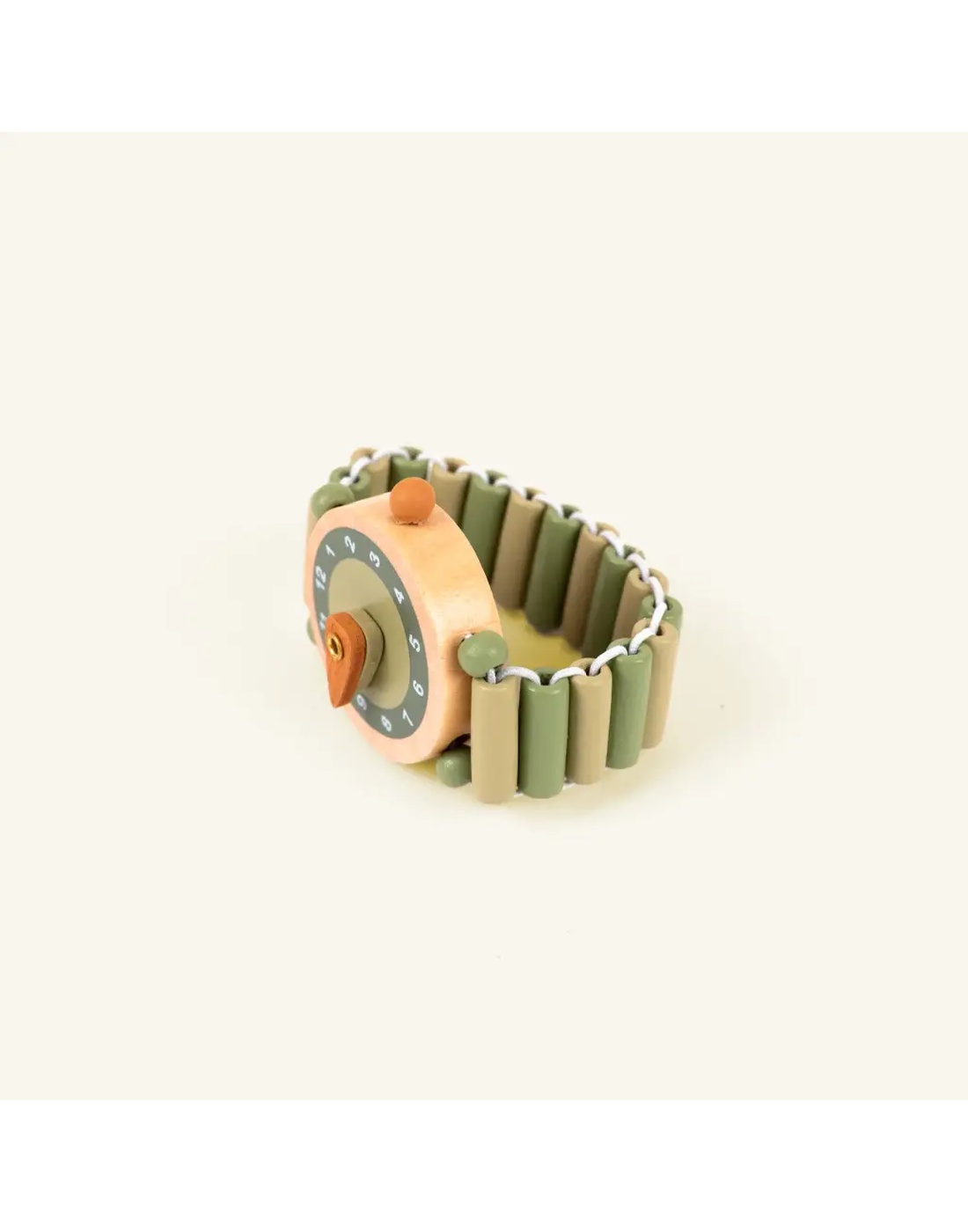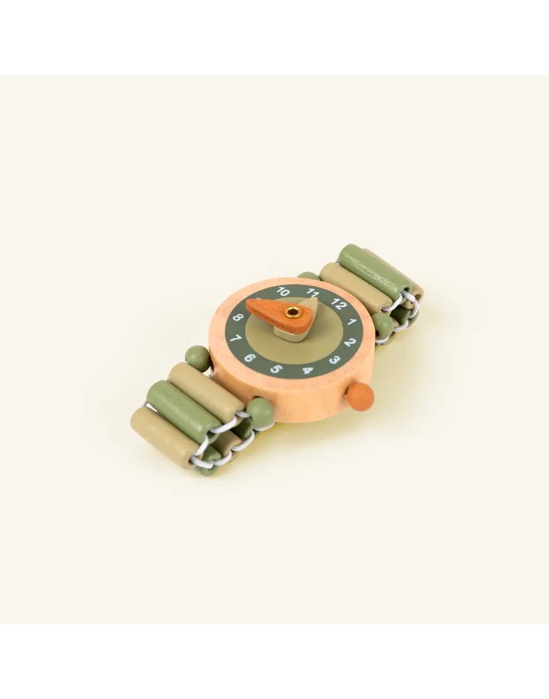 Χαριτωμένο ξύλινο ρολόι χειρός σχεδιασμένο ειδικά για παιδιά που κάνουν τα πρώτα τους βήματα στην εκμάθηση της ώρας. Με απαλές γήινες αποχρώσεις και εύκαμπτο λουράκι από ξύλινες χάντρες, συνδυάζει παιχνίδι και μάθηση με ασφάλεια.
