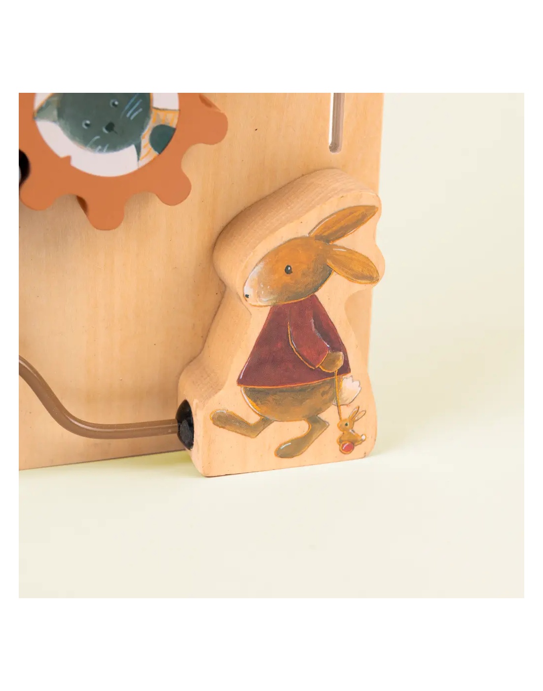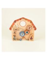 Ξύλινος πίνακας δραστηριοτήτων Egmont Toys σε σχήμα σπιτιού, ιδανικός για την ανάπτυξη των αισθήσεων και της λεπτής κινητικότητας του μωρού. Με χαριτωμένα ζωάκια, περιστρεφόμενα γρανάζια και διαδρομές με χάντρες, προσφέρει δημιουργικό και εκπαιδευτικό παιχνίδι.