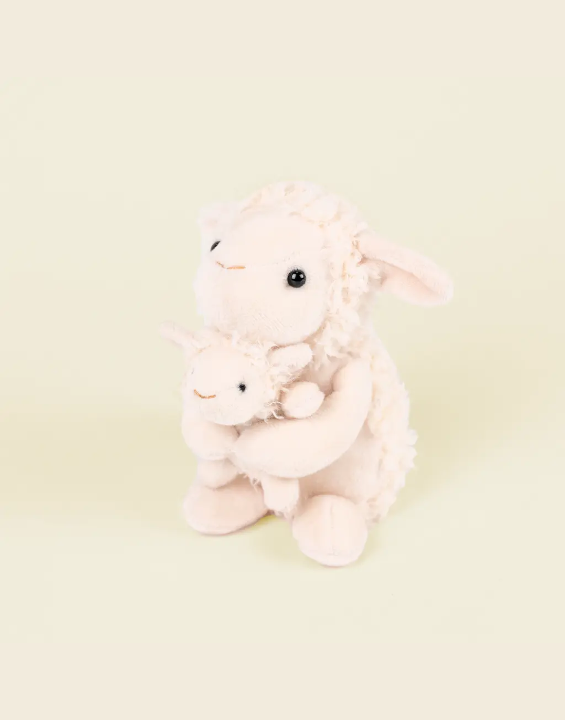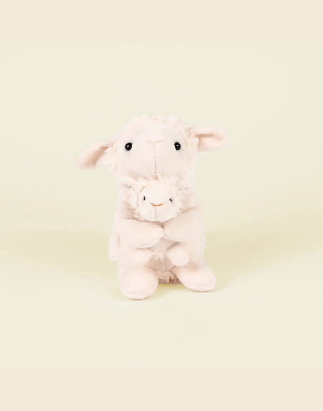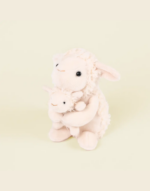 Ένα απαλό και χαριτωμένο λούτρινο προβατάκι που κρατά τρυφερά το μωρό του.