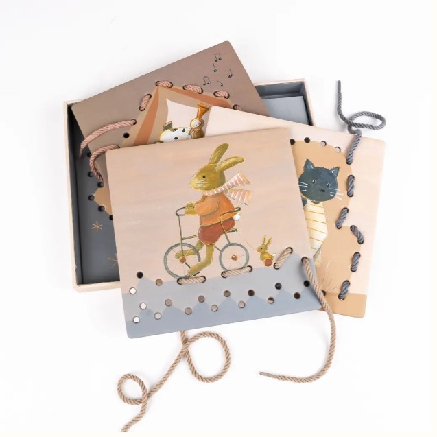 Το σετ περιλαμβάνει 6 κάρτες ραψίματος με υπέροχες εικονογραφήσεις “Friends” (λαγός, γατάκι κ.ά.) και κορδόνια, προσφέροντας μια δημιουργική δραστηριότητα που ενισχύει τη λεπτή κινητικότητα, τον συντονισμό χεριού-ματιού, τη συγκέντρωση και τη φαντασία. Οι στιβαρές κάρτες με προτρυπημένες οπές και στρογγυλεμένες άκρες βοηθούν τα παιδιά να εξασκηθούν στις πρώτες δεξιότητες προγραφής, καθώς περνούν το κορδόνι μέσα από τις τρύπες και ολοκληρώνουν τα σχέδια. Είναι κατάλληλο από 3 ετών και αποτελεί ιδανική επιλογή για ήρεμη και δημιουργική απασχόληση στο σπίτι ή στο ταξίδι.