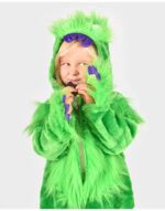 Παιδική στολή τέρατος σε αποχρώσεις πράσινου και μωβ, κατασκευασμένη από μαλακό και ζεστό plush ύφασμα, ιδανική για άνετη εφαρμογή. Η στολή διαθέτει ενσωματωμένη κουκούλα με μεγάλα διακοσμητικά μάτια, καθώς και αφράτες λεπτομέρειες στα τελειώματα των μανικιών και των ποδιών, που προσδίδουν παιχνιδιάρικο χαρακτήρα.