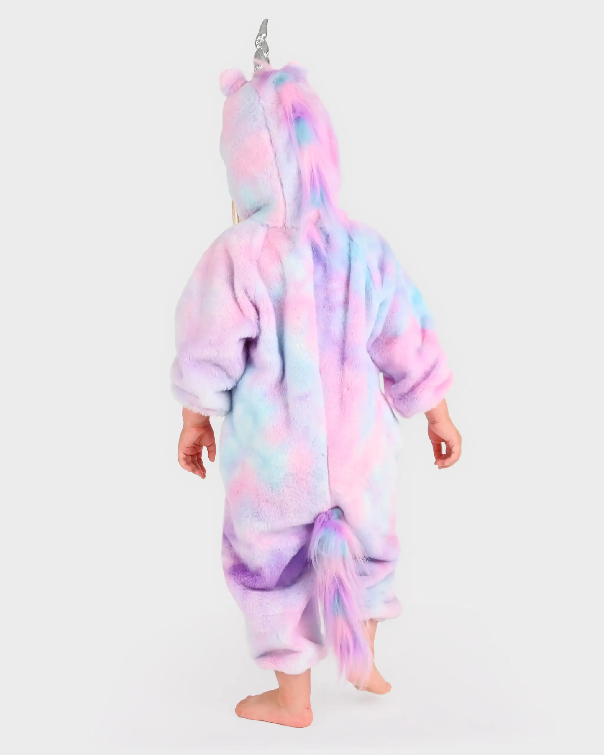 Διαθέτει κουκούλα με χαριτωμένο κεφαλάκι μονόκερου και λαμπερό ασημί κέρας, ενώ η ουρά σε παστέλ τόνους στο πίσω μέρος ολοκληρώνει το μαγικό look. Η άνετη γραμμή επιτρέπει ελευθερία κινήσεων, ώστε το παιδί να τρέχει, να χορεύει και να παίζει χωρίς περιορισμούς.